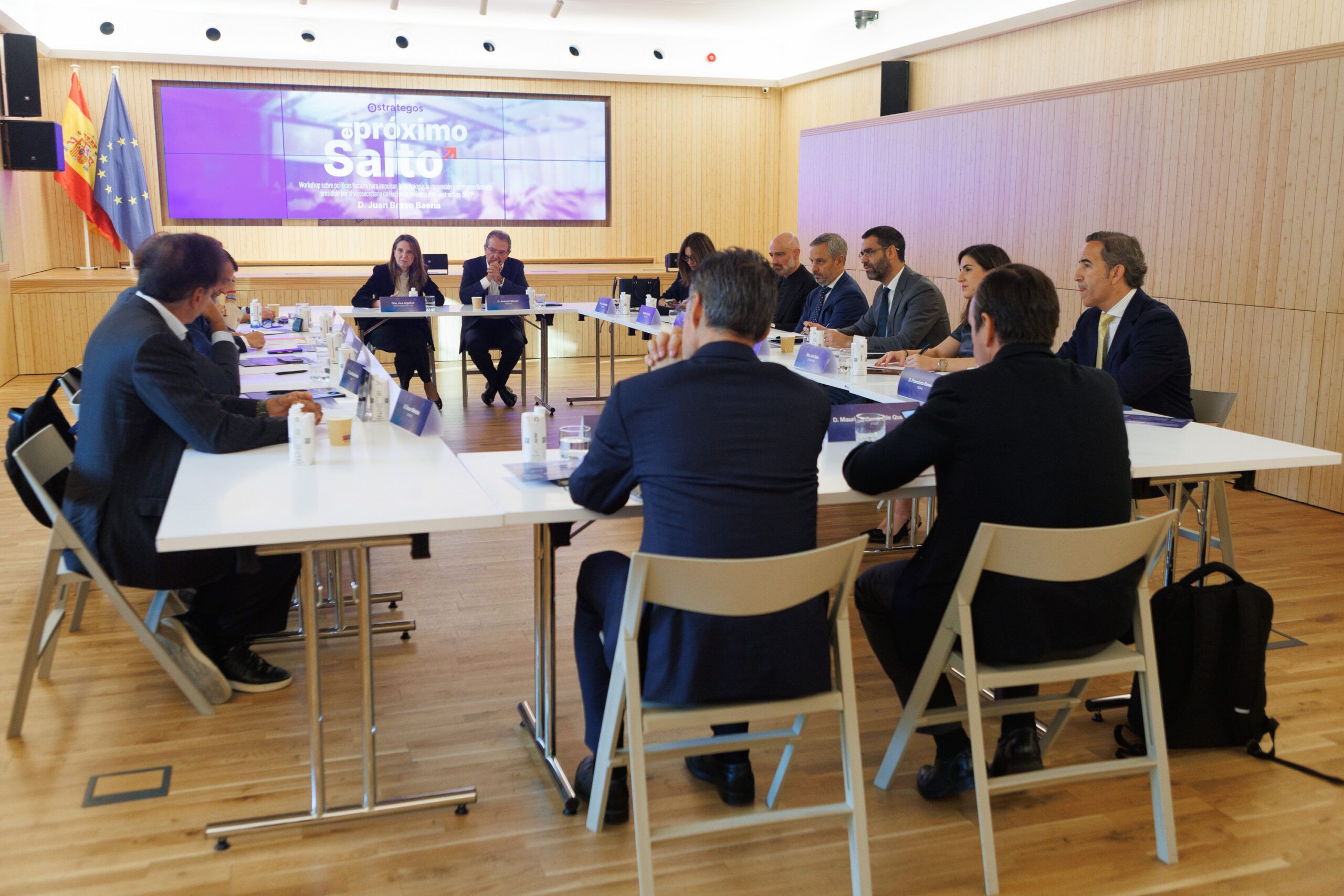 Estrategos ha sentado al Partido Popular y a las grandes empresas de los sectores de defensa, construcción, tecnología y farma, entre otros, en la misma mesa y bajo el paraguas del Workshop El Próximo Salto. El objetivo conjunto era el de abordar las oportunidades, retos y obstáculos que ofrecen en este momento los ámbitos tecnológico, de la innovación y el emprendimiento. Todo ello desde una perspectiva económica y fiscal y teniendo en cuenta el momento de grandes cambios globales al que estamos asistiendo. Por Parte del PP presidió la reunión el Vicesecretario de Hacienda, Infraestructuras y Vivienda, Juan Bravo. Mientras, desde el lado empresarial acudieron ACS, Indra, Farmaindustria, MSD, MasOrange, Mnemo, Stratio, Genaia, TRC, FIAB, Data4 o Meltio, entre otras.
